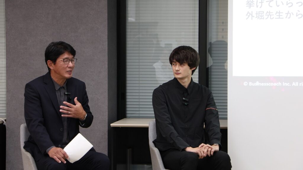 インタビュアーとしてビジネスコーチ株式会社取締役副社長兼エグゼクティブコーチの橋場がセミナーの中で見出した外堀氏の育成の5つの要素、「見極め」「主体性」「長期視点」「信頼関係」「成長指標」に沿って、スポーツの世界における人材育成のあり方から、現代のビジネスにおける人材育成に活きる本質を抽出していきます。